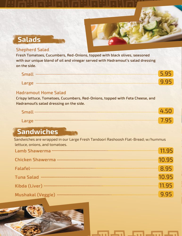 Crispy lettuce, tomatoes, cucumbers, red-onions, topped with feta cheese, and Hadramout`s salad dressing on the side.